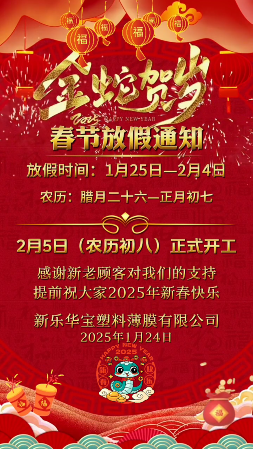 新樂華寶塑料薄膜有限公司是河北華寶塑機股份有限公司的子公司,成立于1999年。公司位于河北省新樂市,距石家莊國際機場6公里,距北京228公里,距天津港275公里,緊臨107國道和京珠高速公路,交通便利。 公司注重技術創(chuàng)新,引進先進水平的生產工藝及加工設備,專業(yè)從事PE流延膜的開發(fā)、研制和生產,是生產PE流延膜的專業(yè)廠家。主要產品有:三層共擠PE流延膜、透氣膜、居中印刷復合膜、低克重...更多